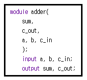 (gate level modeling에 사용되는 모듈은 대부분 처음에 오는 변수가 출력 값이다.)