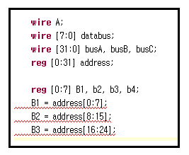 reg [0:31] address 변수의 경우에는 32-bit이고 reg타입의 변수명은 address이다.