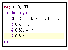 initial block 내부에 있는 코드는 시간 순서에 따라서 위에서 아래로 진행된다.